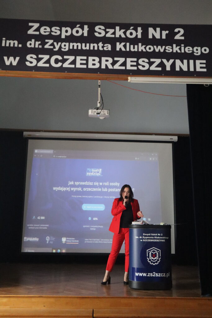 Dnia 15 kwietnia 2026 w Zespole Szkół Nr 2 im. dr Z. Klukowskiego w Szczebrzeszynie odbyło się spotkanie młodzieży z p. prokurator z Sądu Rejonowego w Zamościu. Celem spotkania było zapoznanie młodzieży z pracą prokuratora, zasadami odpowiedzialności karnej oraz zwiększenie świadomości prawnej wśród młodych ludzi, szczególnie w aspekcie nękania. Spotkanie rozpoczęło się od przedstawienia prokuratora …